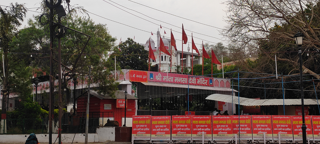 Early Worship: Long before any formal structure was built, locals worshipped the goddess in the form of three Pindis (sacred stone pebbles) representing Mansa Devi, Saraswati, and Lakshmi. Legend says a cow would come daily to the hilltop and offer milk at these stones, leading the villagers to discover the holy site.